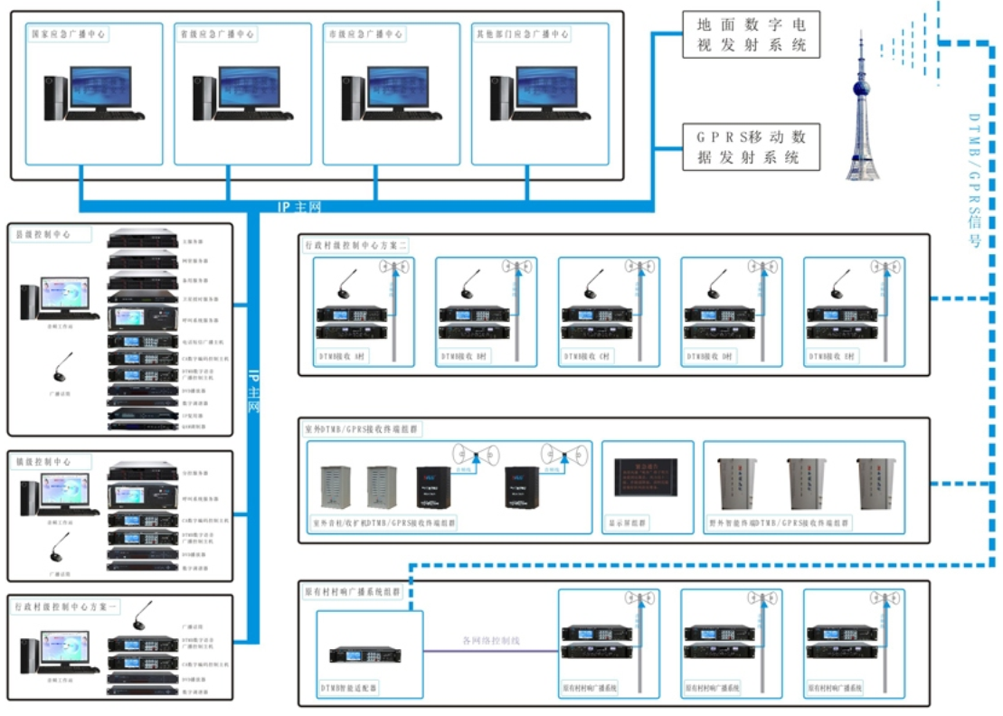 該係(xì)統多級聯播管理,國家、省、市、縣、鎮、村多級聯網,與國(guó)家相關應急部門(mén)實現互聯互通。